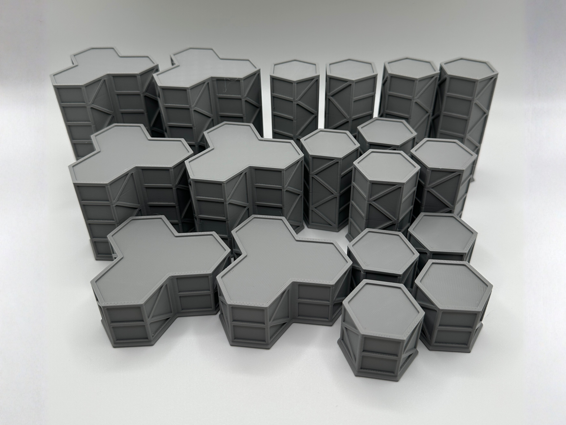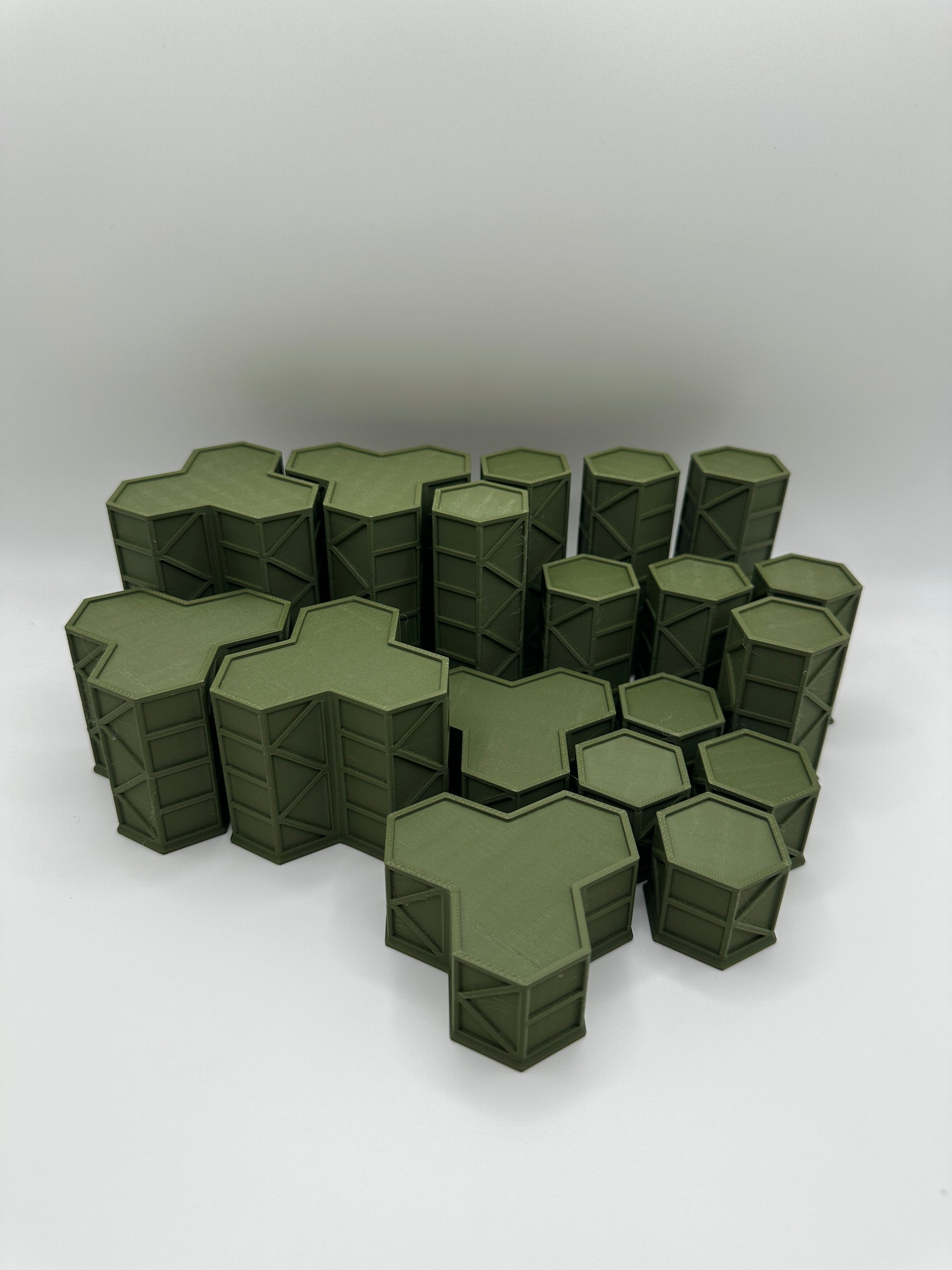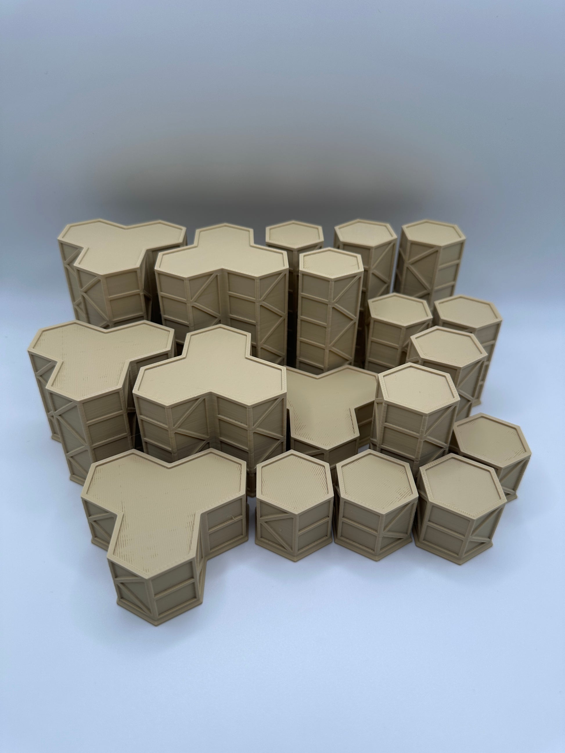 These buildings are designed to sit directly on top of hex terrain, making them ideal as city structures, objectives, control points, and line-of-sight blockers without replacing your existing map system.